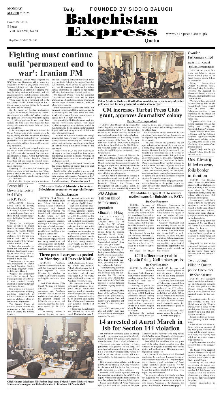 daily balochistan express March 09, 2026 << First << 1 >> Last >> Page 1Page 2Page 3Page 4Page 5Page 6Page 7Page 8 × daily balochistan express Page 1Page 2Page 3Page 4Page 5Page 6Page 7Page 8 Page 1
